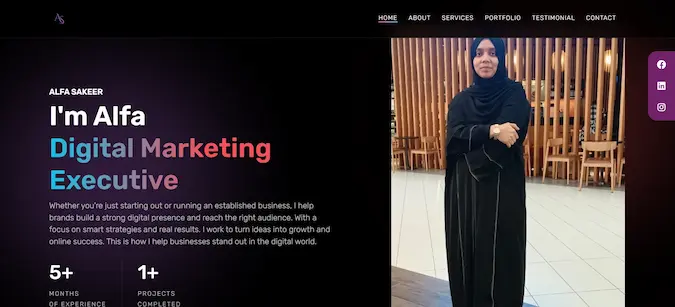 I’m Alfa, and I’m a Digital Marketing Freelancer in Dubai who loves what I do. After I finished education, I took a Digital Marketing course at Skillmount Academy. This was the start of my career as a Digital Marketing Freelancer in Dubai . Since then, I’ve helped brands get more exposure online and see real results. I’ve done this by using strategic campaigns and data-driven solutions to help businesses grow. Find out about My Services and Get in Touch today to reach your business goals.